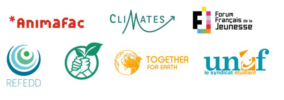 Animafac, CliMates, Forum Français de la Jeunesse (FFJ), REFEDD, Résilience, Together For Earth, UNEF.