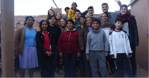 Des membres du projet Canon à Tupiza en Bolivie en compagnie des femmes entrepreneures qu’ils aident et conseillent dans la fabrication d’une collection de vêtements en laine d’alpaga