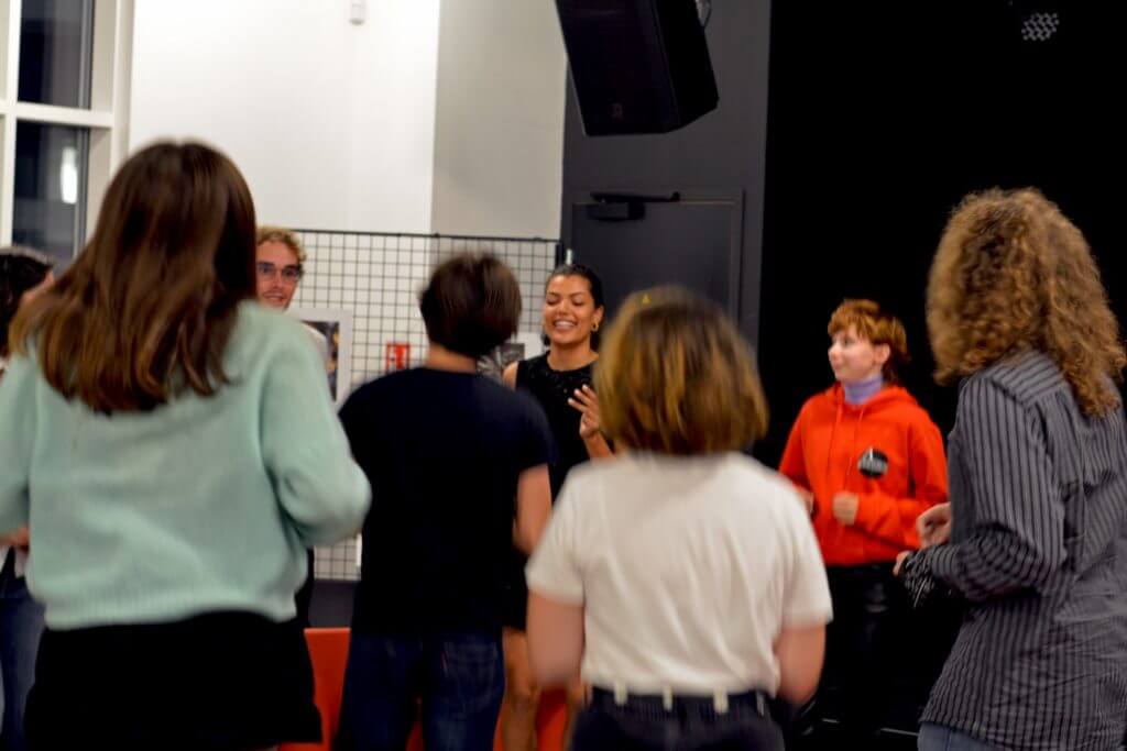 Nous avons eu plusieurs temps : tout d’abord un brise-glace qui était plutôt gênant mais qui a fait rire nos convives, donc une réussite ! Le but était d’aller voir une personne, de lui poser une question mais c’est la personne à sa droite qui devait répondre, celle-ci répondait donc n’importe quoi…