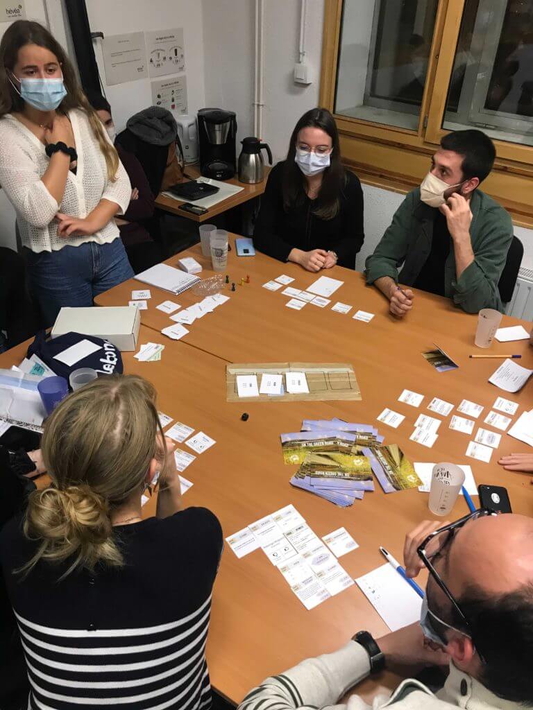 De l’autre côté, l'Epicerie Gratuite de Rennes 2 nous a proposé un jeu fait main sur l’alimentation durable. En fonction des réponses trouvées par les différentes équipes, on gagnait un petit objet, le but à la fin est de faire la plus belle structure avec tous les objets ! Une fois ce jeu fini, comme il durait moins longtemps que l’atelier d’ESN, j’ai proposé aux participant.e.s de réfléchir à comment mettre en place de l’alimentation durable dans leur campus. Plein de belles idées en sont ressorties !