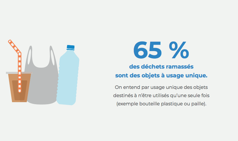 Et il est important d’agir à la source, et ce notamment sur le problème des plastiques à usage unique. C’est un matériau très dangereux pour l’environnement dont le rapport entre production et utilisation est dérisoire : il suffit d’1 seconde pour produire un emballage plastique et son utilisation se limite à une vingtaine de minutes. De plus, ces objets ne se dégradent pas, ils vont uniquement se fragmenter en micro-plastiques, très difficiles à identifier et dont une partie considérable arrive dans le milieu marin directement sous cette forme, issus des cosmétiques (interdits depuis janvier 2018 en France), des fibres des vêtements textiles, des pneus, … En bref, l’origine est toute trouvée, les pollutions plastiques proviennent à 80 % du continent et du comportement des humains.